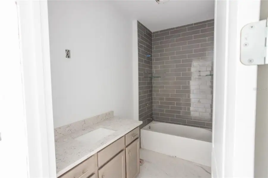 The Owner’s suite is nothing short of a luxurious retreat, featuring dual sinks, an upgraded glass-enclosed shower adorned with 4x16” Anatolia Soho white tiles, complemented by Anatolia Zen Flat Pebble vertical listello accents, a striking 72x36” contemporary mirror with front and back LED lighting, anti-fog technology, customizable color settings with a dimmer, and two expansive walk-in closets—offering both indulgence and practicality. The second bathroom continues the luxe experience with the front and back LED mirror, Anatolia Soho 4”x16” Ceramic Tile shower walls, Everleigh quartz vanity, and Moen Genta LX chrome fixtures for a sleek, polished look.