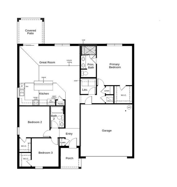 This charming, single-story home showcases a covered front porch for added curb appeal. Inside, discover an open floor plan with luxury vinyl plank flooring and a spacious great room that features volume ceilings. The kitchen boasts an island, breakfast bar, pantry, quartz countertops, Whirlpool® stainless steel appliances and 42-in. upper cabinets with crown molding. Relax in the primary suite, which includes a walk-in closet and connecting bath that offers an extended dual-sink vanity, quartz countertop and walk-in shower with seat and tile surround. Enjoy the outdoors on the covered back patio.