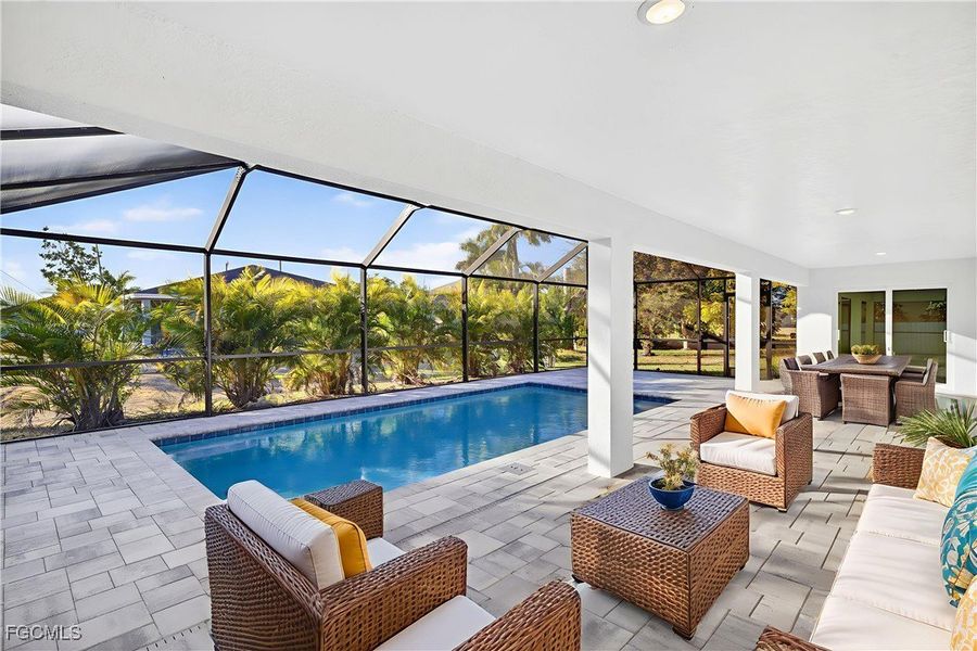 Enjoy Florida’s year-round sunshine in your private backyard oasis. The 1,100 sq ft under-truss screened lanai is perfect for outdoor dining, lounging, or entertaining, while the heated, in-ground pool invites you to relax or play in style. Impact glass windows and doors provide peace of mind, energy savings, and lower insurance costs, while the home’s elevated site is outside the flood zone—delivering both safety and savings.
