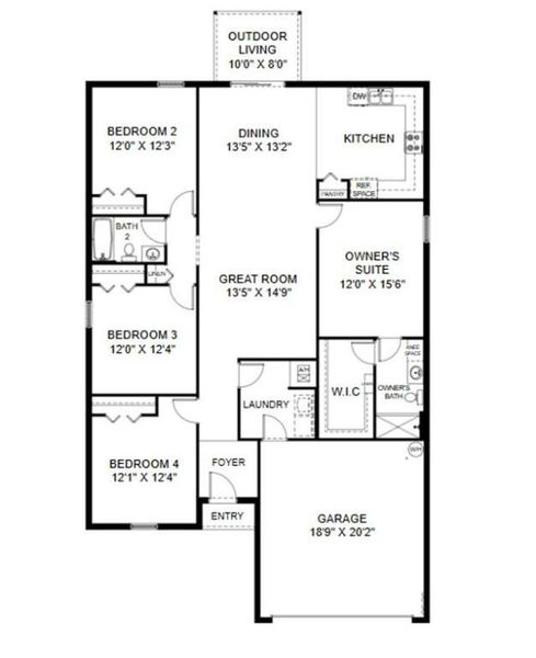 Welcome to the Queen, a four-bedroom floor plan from our Value collection. Designed for privacy and comfort, this home features three bedrooms on one side while the Owner's Suite is situated on the other side. As you enter through the foyer, you'll notice the Great Room and Dining Area offers a seamless flow and abundant natural light from the sliding glass doors leading to the backyard. The kitchen, positioned at the back of the home, is conveniently adjacent to the dining room. With ample counterspace and cabinets, it provides the perfect setting for all your culinary endeavors.