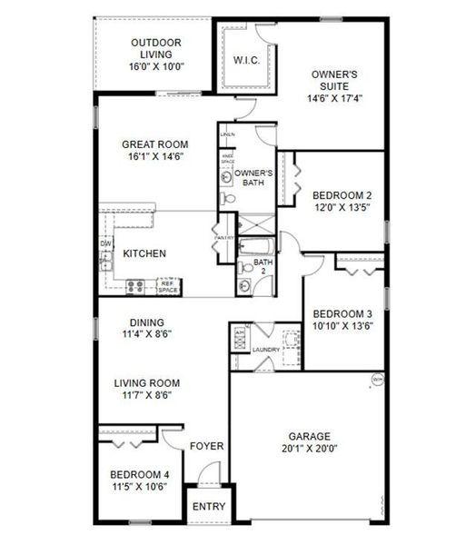 Welcome to the King, an impressive four-bedroom floorplan. With its open layout, this home offers the perfect balance between entertaining space and private retreats. At the front of the home, you'll find a versatile bedroom that can easily be transformed into a den or office to suit your needs. The living room and dining area seamlessly flow together, creating a great sense of openness. Continuing into the kitchen, you'll be delighted by the abundance of counterspace and cabinets. The kitchen also features a convenient breakfast bar, perfect for casual dining or socializing. The laundry room is conveniently located within the home. Other bedrooms are situated on one side of the home, providing a dedicated space for rest and relaxation.