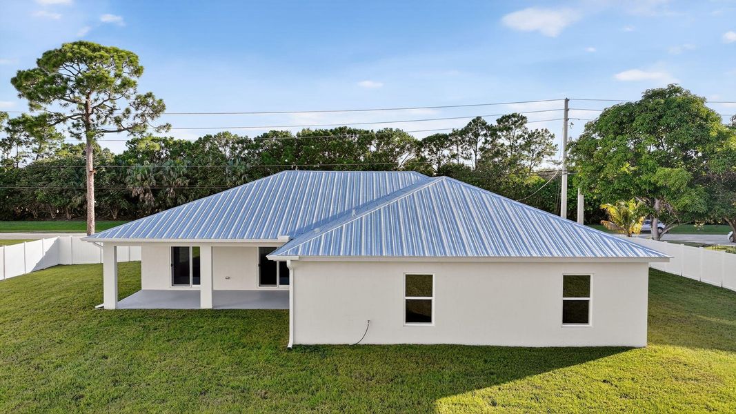 5V metal roof, impact-resistant windows and doors, and installed gutters. Step inside to find 32''x32'' porcelain tile in the main living areas, plush carpeting in the bedrooms, crown molding and baseboards.
