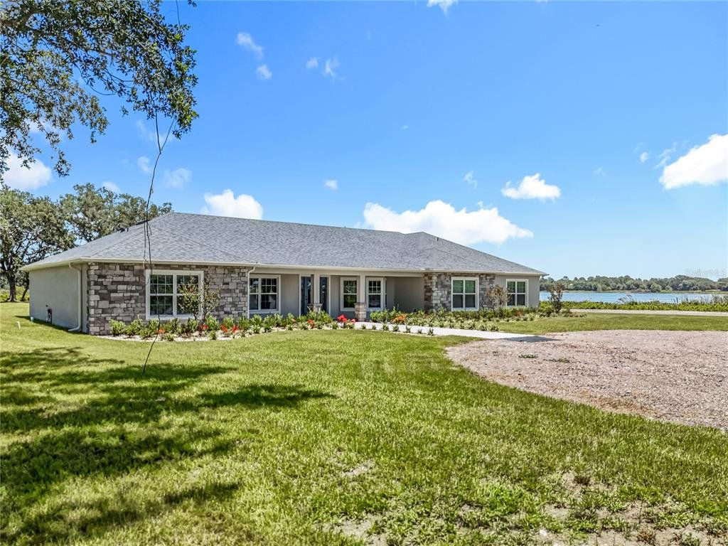 Welcome to this stunning brand-new home perfectly positioned on a picturesque point with access to both Lake Holly and your own private pond. This unique waterfront retreat offers serene views from every angle, combining modern construction with the timeless appeal of lake life.