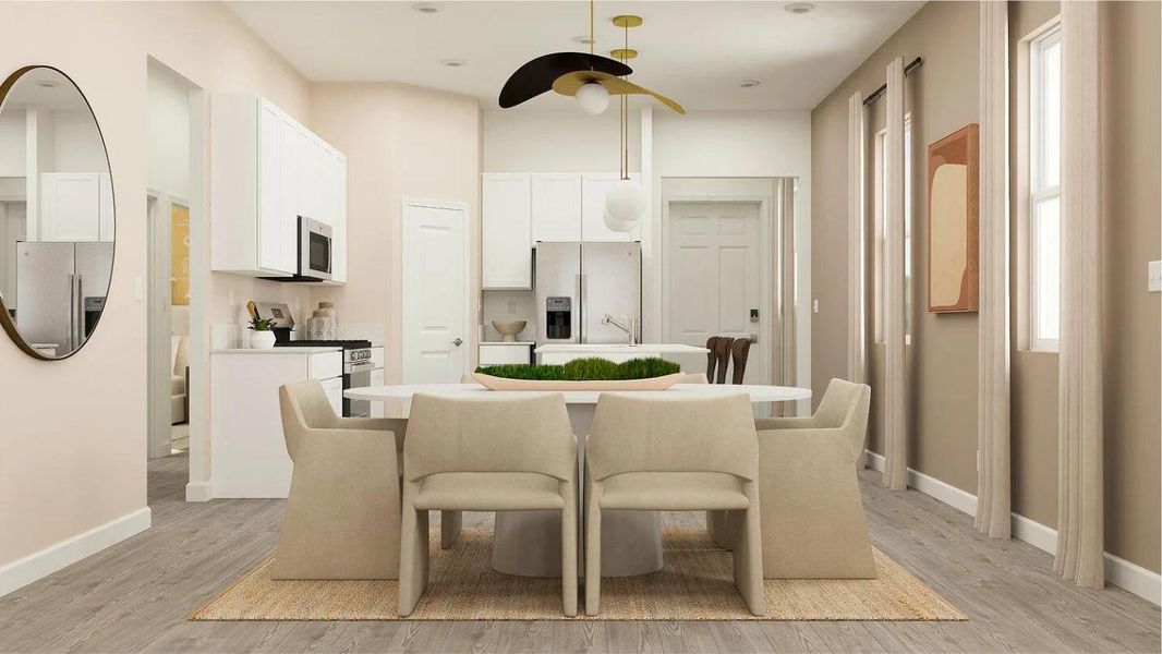 This new two-story home is perfect for entertaining with a convenient bonus room on the second level. On the first floor, an inviting open-concept layout blends the kitchen, living and dining areas, with easy access to a nearby covered porch. All three bedrooms are tucked away to the side for optimal comfort and privacy, including a lavish owner's suite at the back of the home with a full bathroom and walk-in closet.