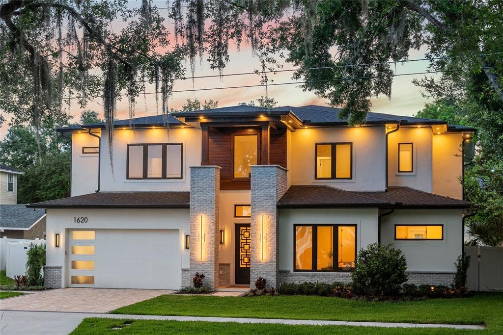 Welcome to this stunning newly constructed home, perfectly situated on a spacious ¼-acre lot in the highly coveted Delaney Park neighborhood. Offering over 4,000 square feet of thoughtfully designed living space, this 5-bedroom, 5.5-bathroom residence showcases luxury, sophistication, and impeccable craftsmanship throughout. From the moment you step inside, you’ll be captivated by the wide plank white oak hardwood flooring, soaring ceilings, custom solid core doors, and high-end designer finishes. At the front of the home, a light-filled office with a closet provides the flexibility of a 5th bedroom. The expansive primary suite is a serene retreat featuring an electric fireplace, French doors for direct access to the backyard, a large walk-in closet, and a spa-like en suite bathroom complete with dual sinks, soaking tub, and an oversized walk-in shower with built-in massage system. The heart of the home is the open-concept living area, where the spacious family room, dining space, and gourmet kitchen seamlessly blend for effortless entertaining. The kitchen is a true showstopper—equipped with a premium Café appliance suite, quartz waterfall island, walk-in pantry with custom cabinetry and shelving, designer pendant lighting, gas range with pot filler, and a stunning fluted white oak range hood. A stylish wet bar with wine fridge and electric fireplace flanked by custom built-ins completes the family room. Expansive sliding glass doors lead to a beautifully landscaped, fenced backyard oasis. Enjoy outdoor living year-round with a covered lanai featuring tongue & groove ceilings, a full outdoor kitchen with sink, gas grill, beverage fridge and bar seating, plus a luxurious heated PebbleTec saltwater pool and spa with sunshelf, water feature, and two dramatic gas fireballs. Additional features include a full pool bath, white vinyl privacy fence, irrigation system, landscape lighting, and rain gutters. The first floor also includes a half bath and a well-appointed laundry room with custom cabinetry and utility sink. Upstairs, you’ll find three generously sized bedrooms, each with its own en suite bathroom and walk-in closet, a large loft space with wet bar, and a covered balcony overlooking the backyard. Smart & Energy-Efficient Features: Whole-property WiFi with four access points (including full outdoor coverage), Two high-efficiency HVAC systems, Three Rinnai tankless gas water heaters, Ring doorbell + four CCTV security cameras, Comprehensive ADT security system with door sensors, variable speed high efficiency pool pump. All of this is ideally located walking distance to Lake Davis, Lake Cherokee, Delaney Park’s tennis courts, baseball fields and playground, and A-rated Blankner K-8 and Boone High School. Enjoy the convenience of being near SODO, Thornton Park, Orlando Health, and the Dr. Phillips Performing Arts Center. Don’t miss your chance to own this one-of-a-kind, new construction masterpiece in one of downtown Orlando’s most sought-after neighborhoods!