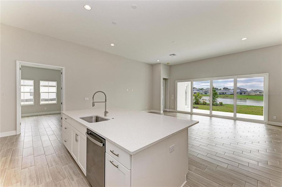 This Islamorada II is Ready Now ! This spacious residence presents five bedrooms across two thoughtfully designed stories. The main level is built for effortless living and entertaining, featuring a seamless flow connecting the grand room, island kitchen, and casual dining area. For convenience, a comfortable guest suite and full bathroom are also situated downstairs. The kitchen boasts elegant Quartz countertops and an upgraded gourmet electric appliance package that inspires culinary creativity. Outside, a generously sized lanai provides a perfect spot to unwind and take in stunning water views. The upper floor reveals an expansive bonus room, perfect for gathering or play, alongside an oversized secondary bedroom offering abundant closet space.