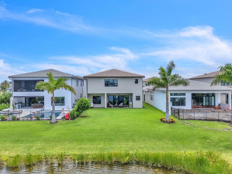Priced $40k below appraised value. Discover elevated living in this spacious 5-bed, 7-bath Polynesia model on a long-view lakefront lot and near the state-of-the-art clubhouse. Enjoy premium amenities: restaurant, fitness, resort-style pool and spa, tennis, pickleball, poolside bar, indoor basketball, and more. Inside, soaring ceilings, an expansive kitchen with a generous quartz island that is ideal for entertaining and the custom glass staircase adds architectural flair. You'll find a full bed-bath and a separate cabana bath downstairs and upstairs, the primary suite offers impressive space with dual walk-in closets and two separate full baths. The lot provides ample room to customize with a pool and outdoor kitchen for ultimate Florida-style living.