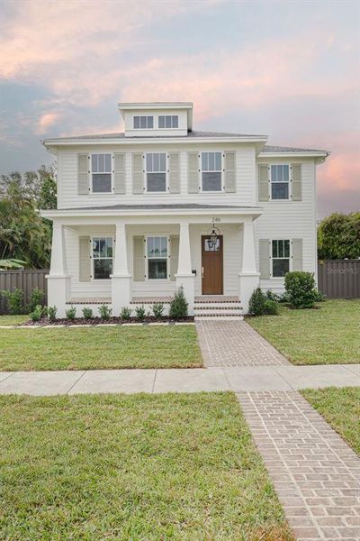 Don’t miss the chance to make this MOVE-IN READY home yours by Canopy Builders – St. Petersburg’s most TRUSTED name in luxury home construction. This beautifully crafted new construction home offers 6 bedrooms and 4.5 bathrooms across 3,589 sqft of total living space—including a 3,000 sqft main house and a 589 sqft 1 bed, 1 bath fully equipped Accessory Dwelling Unit (ADU) above a detached two-car garage. Located in the desirable Old Southeast neighborhood, this home is one of several new Canopy homes redefining the street with timeless design and modern livability. A welcoming front porch opens to a light-filled foyer with an elegant staircase and open sightlines. A major highlight is the FIRST-FLOOR PRIMARY SUITE, tucked privately behind the main living areas. It offers a large walk-in closet and a spa-like bathroom with dual vanities, frameless glass shower, and marble tile. To the right of the foyer, the gourmet kitchen showcases shaker-style maple cabinetry, upgraded quartz countertops, a wood range hood, GE Monogram appliances, and a farmhouse-style enameled cast iron sink. Soft-close drawers, 42” upper cabinets, and a luxe finish faucet reflect thoughtful craftsmanship. The kitchen connects to a dining area and a spacious living room with direct access to the covered back porch overlooking the private backyard. Just off the living room are a mudroom, laundry room with granite composite sink, and a powder bath with floating vanity—conveniently located near the rear entrance. Upstairs are four additional bedrooms, two full bathrooms, and a flexible bonus room. Bedroom 3 includes its own private en-suite bath, while Bedrooms 2 and 4 share a well-appointed hall bath. Bedroom 5 and the bonus room offer space for work, play, or guests. The 589 sq ft ADU provides private, detached living space with a bedroom, bathroom, full kitchen, great room, walk-in closet, and in-unit washer/dryer—ideal for guests, rental income, or multi-generational living. Every aspect of this home is thoughtfully planned, featuring a pre-designed finish package, Hardie Board siding, engineered hardwood flooring, impact-resistant windows, a tankless gas water heater, dual thermostats, 10’ ceilings, 8’ interior doors, and a gas sconce on the front porch. Exterior features include Sherwin-Williams paint, Owens Corning 30-year shingles, a paver walkway and porch, and Emtek entry hardware. Energy-efficient elements include a 15+ SEER HVAC system, open-cell attic insulation, and Low-E double-pane windows for year-round comfort. Backed by Canopy’s comprehensive warranty -- this home offers peace of mind and lasting value. Located just steps from Lassing Park, minutes to Downtown St. Pete, and only 15 minutes to St. Pete Beach and 20 minutes to Tampa, this home delivers the perfect blend of character, craftsmanship, and convenience. Schedule your private tour today—your dream home awaits.