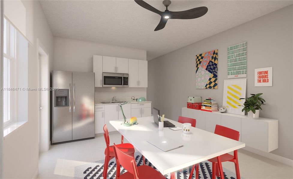 This luxurious two-story Next Gen® home showcases a sprawling first-floor private suite with a garage, living room, kitchenette, bathroom and two desirable bedrooms that enable relatives to live independently. The main home offers a formal living room and dining room to entertain guests, complemented by a well-equipped kitchen and a casual family room with backyard access. Upstairs are two secondary bedrooms and the spacious owner’s suite with two walk-in closets and a spa-style bathroom.