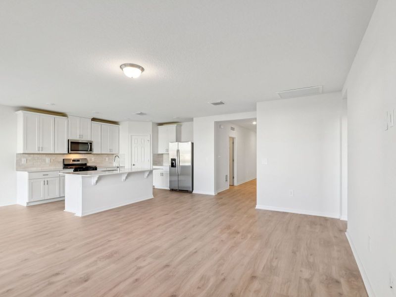 Open floor plan creates a unified living space with a large great room that overlooks the kitchen and dining area. The primary suite is tucked in the rear of the home offering plenty of privacy and features a spacious walk-in closet and shower.