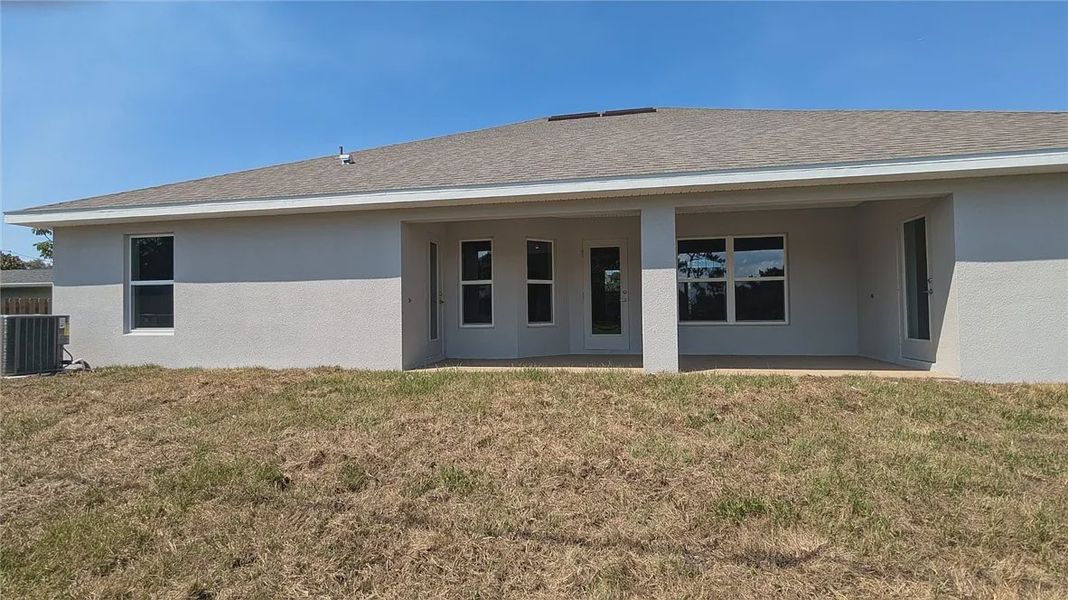 4 bedrooms, 3 full baths (the 2nd bathroom is a cabana bath with double sink and door), featuring an open split floor plan, a large kitchen with 36'' cabinets and crown molding, and Stainless Steel appliances. The private lanai and backyard space is perfect for entertaining with NO HOA! Other features in this home include double doors closets, tilt in windows, 5 1/4''baseboards, Pest Prevention system,5 panel interior doors. And you might get 20K Flex (offer) Ready in Oct.