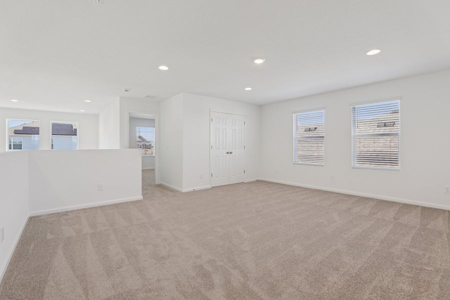The Alexandria delights on every level. An extended foyer leads to an open kitchen and family room, flowing effortlessly to a peaceful covered patio—perfect for enjoying your morning coffee. A ground-floor study offers a quiet space for work or homework, while the first-floor primary suite with a walk-in closet and en suite bath provides a serene retreat after busy days. Upstairs, a spacious game room and separate media room create multiple areas for fun and relaxation, offering endless opportunities to entertain family and friends.