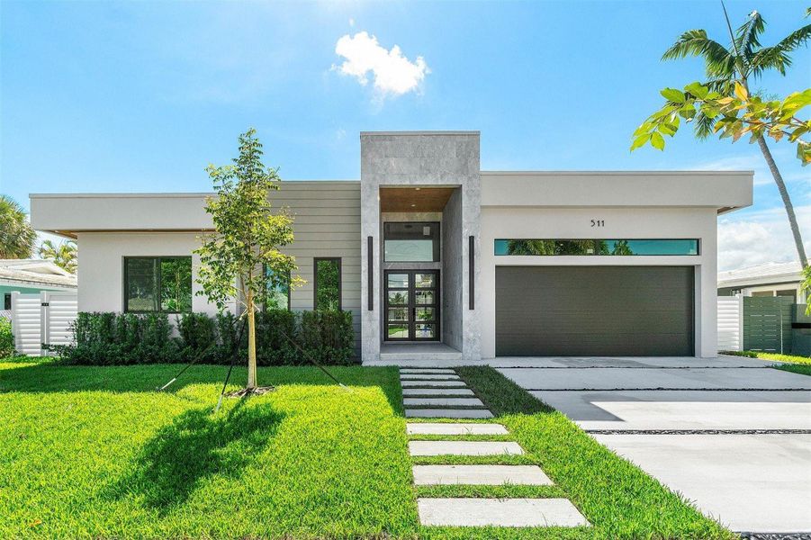 Modern Waterfront New Construction in Pompano Beach. 3,301 total sq ft built for peace of mind and designed for the ultimate Florida lifestyle. Completed with Certificate of Occupancy, this one-level residence offers ocean access, a new concrete dock, saltwater pool with hot tub spa, large covered patio, cabana bath, and a fully equipped outdoor kitchen. Inside, enjoy high ceilings, porcelain floors, marble baths, custom white oak cabinetry with designer lighting, high end appliances and plumbing fixtures.Built with quality craftsmanship and attention to detail, curated for comfort, elegance, and low-maintenance coastal living. Experience seamless indoor-outdoor living, ideal for entertaining or peaceful waterfront relaxation just minutes to the beach, waterfront dining, and airports.