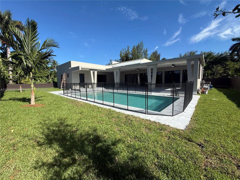 NEW CONSTRUCTION!!! 4,214 sqft 4 bed 5 bath one story CONCRETE ROOF Single Family Home with 2 car garage with EV ready and impact windows and doors on a 12,740 sq ft lot with pool and NO HOA. Lot large enough to park boats and/or RV. Beautiful driveway with lush landscaping and lighting. The home has +/-16ft ceilings in the great room and up to +/-13ft ceiling in the master with 3 walk in closets and huge master bath. Master bath has tub with walk around showers. This home features a beautiful modern/contemporary design with recessed lighting throughout the home and linear AC diffusers. Extra-large kitchen island with counter depth large refrigerator, walk in wine cellar and BBQ with outdoor kitchen and ceiling fans in terrace. Home comes with Sonance in ceiling speakers and smart ready.