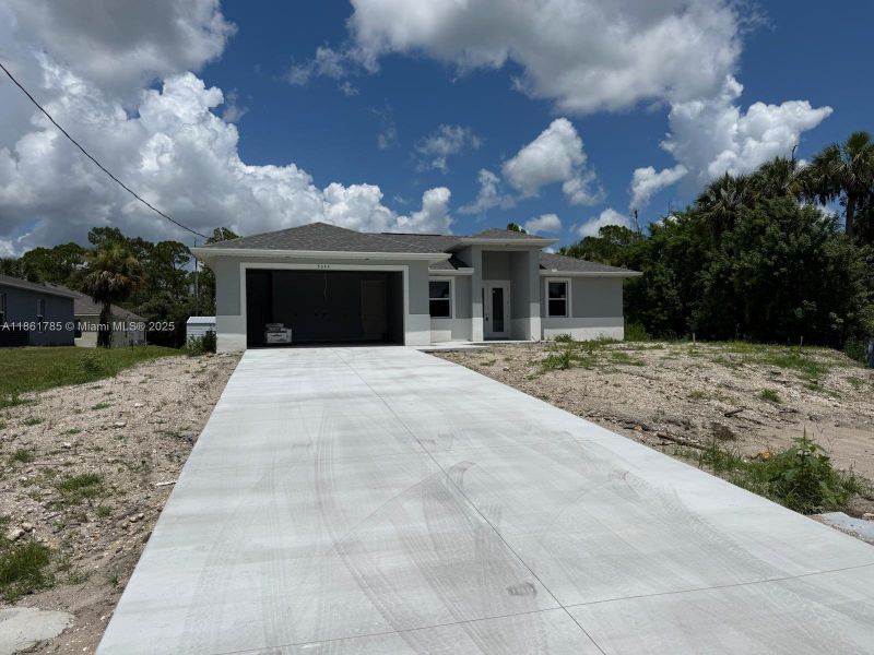 Beautiful new construction 4 BEDROOMS, 2 BATHROOMS to be completed by October 2025 . This home has a modern design including many features: Double glass door, tray ceilings, impact resistant doors and windows, all tile floors, floor to ceiling tiled master shower, 8' interior doors, 9' 4 ceiling height, stainless steel appliances, granite level 2, large size charming island, soft close cabinets, chandelier above dining room, his & her walk in closets in master bathroom, a large size master shower, double sinks in master bathroom, automatic garage door opener, ceiling fans in bedrooms and great room, irrigation system, gutters in front, laundry room with a tub near garage, large size lanai under trusses. A FREE 10 YEAR HOME WARRANTY!! (The fourth bedroom is a large office)