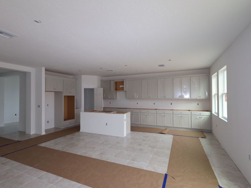 Open-concept floorplan connecting kitchen, dining, and living areas