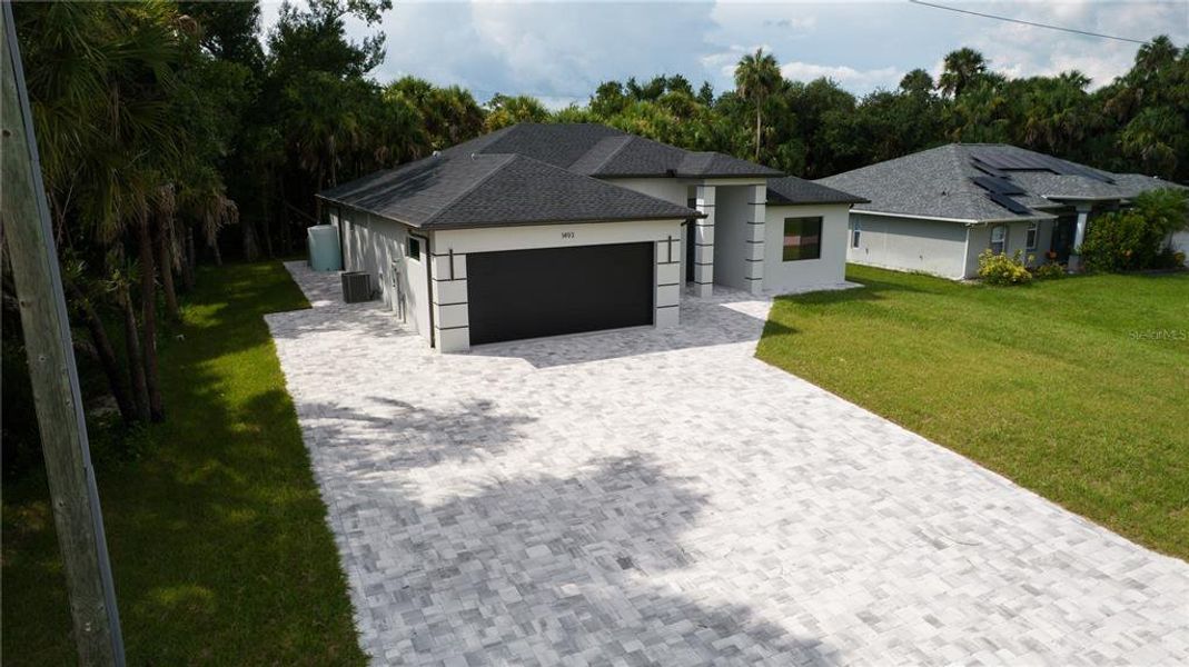 NEW CONSTRUCTION!!! WELCOME TO THIS STUNNING LUXURIOUS CUSTOM-BUILT HOME, featuring 3 bedrooms, 2 bathrooms, an office, a 2-car garage and 1,937 square feet of living space. From the moment you enter this dazzling property, you'll be captivated by the open floor plan that features 10-foot ceilings throughout the home, high-end finishes, large custom windows, fantastic design and contemporary lighting package. PREMIUM UPGRADES THROUGHOUT! The living space feature wall offers a wired space for a TV and fireplace. A true chef's kitchen with Quartz countertops and backsplash, stainless steel appliances, built-in double oven, walk-in pantry, upgraded 42" and 18" double-stacked cabinets that include pullouts to maximize storage, LED lights under cabinets, quartz back splash and large center island for entertaining! The kitchen is open to the dinette area and great room with sliding doors leading to the large lanai. You will love the owner's suite, which features a walk-in closet, dual-sinks, private water closet, and glass-enclosed walk-in luxury tile shower. Your new home has been upgraded with beautiful fixtures and finishes, including Luxury Vinyl Floors, Hurricane Impact Glass throughout, 8' doors, outdoor kitchen, outdoor shower, all the wiring ready for the pool, oversized driveway with flat and leveled frontage, sidewalk around the house and so much more! Also, the house is wired for security cameras outside. This home is NOT in a flood zone and has been constructed to the most current building codes and standards, resulting in homeowners’ insurance premiums that are surprisingly affordable. There are NO mandatory HOA or CDD fees. Outside the home, gorgeous natural landscaping offers plenty of privacy and the opportunity to enjoy the Florida sunshine. This house is located just a short distance from stunning gulf beaches, fishing, boating, golfing, and the brand-new Downtown Wellen Park, which features shops, restaurants, groceries, Atlanta Braves Spring Training Facility and more! Easy access to I-75 and US 41. Relax and enjoy the peace & tranquility while enjoying the Florida sunshine! OWN A PIECE OF PARADISE!