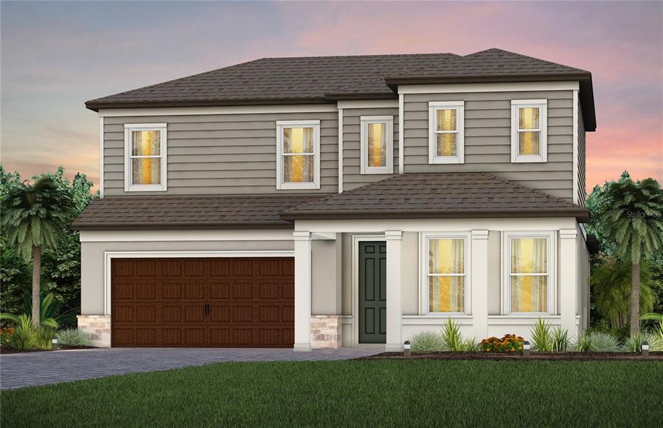 Additional upgrades and features include LED downlights and floor outlet in the gathering room, 8’ first floor interior doors, whole house faux wood blinds, iron balusters w/oak handrail, pocket sliding glass door at gathering room and a Smart Home technology package with a video doorbell.