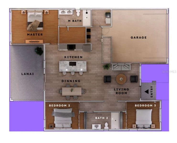 The property features a contemporary open-concept design, a split floor plan for added privacy, an integrated kitchen with a breakfast bar, indoor laundry room, and quality finishes throughout. Perfect for families, first-time homebuyers, or those seeking a peaceful retreat in rural Florida.