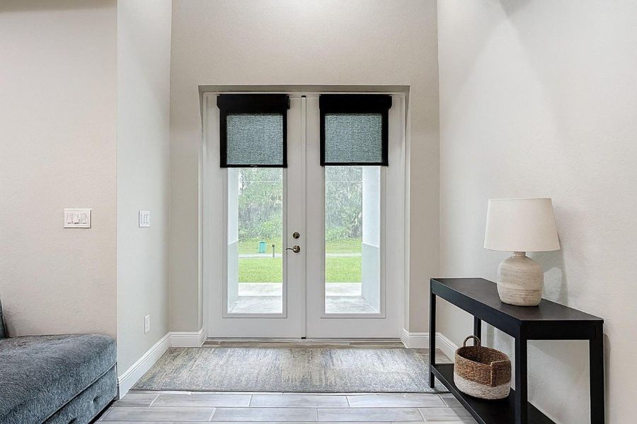 - Atrium DoorsCeiling-VaultedFoyerBlindsFrench Doors