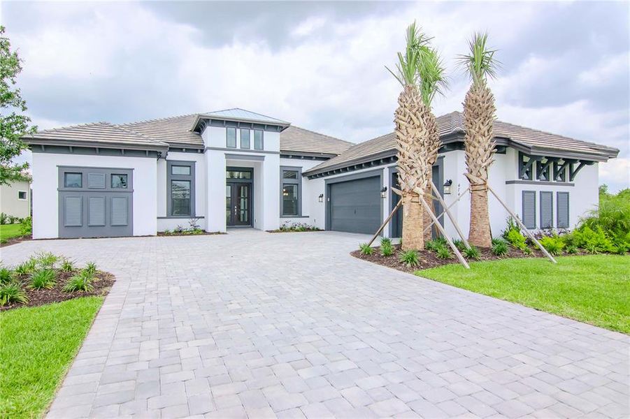 The Beacon is a floor plan that does more than just impress. Located in Wiregrass the heart of Wesley Chapel. This 3,690 square foot home presents three en-suite bedrooms all with walk-in closets, a bonus room, an office and an extra large three-car garage as well as a lineup of distinguished upgrades. When entering through the front door the 14 foot double tray ceilings give an immediate sense of grandeur and spaciousness. The main living area completely opens up, bringing the outside in. The kitchen is stacked with 60+ inch all real wood upper lighted cabinets with glass front doors. The lower cabinets have wooden pull outs and drawers to make access an ease. There is over and under cabinet accent lighting mounted throughout the kitchen. There is eight burner gas range with commercial sized hood, an in-wall oven and microwave, two wine chillers, a huge island with a dishwasher and full size lower cabinets under the breakfast bar. The walk-in pantry is upgraded with wooden shelves. All kitchen appliances are Monogram Cafe Series. The office offers tons of natural light. The back of the property is the bonus room that opens up to the outside as well. This home is an entertainers dream with the heated pool, spa and outdoor kitchen. There is so much to offer in this wonderful, private property.