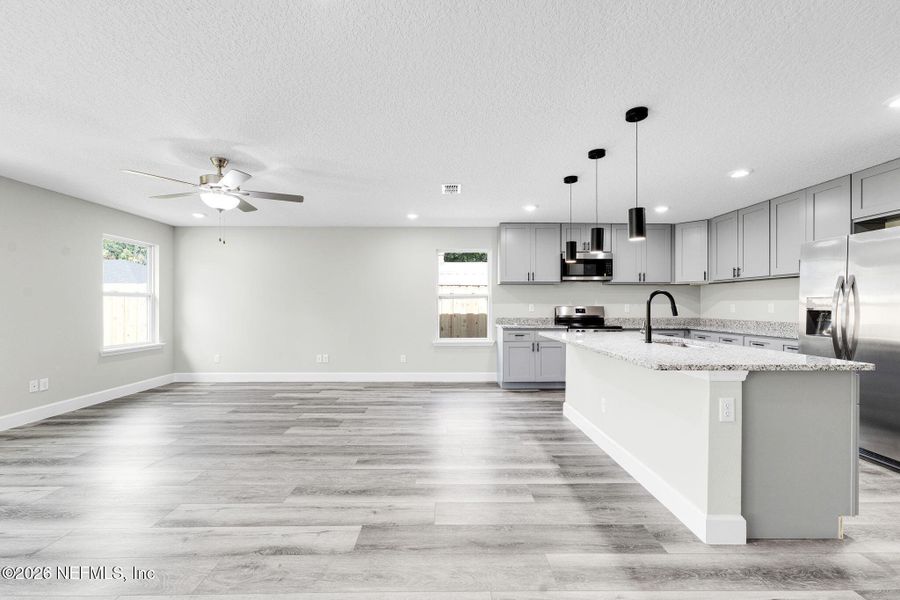 New Construction Home with Septic and Well This new construction home showcases high-end finishes and timeless design throughout. The open-concept floor plan features luxury vinyl plank flooring, recessed lighting, and a neutral color palette. The kitchen is equipped with granite countertops, white shaker cabinets, stainless steel appliances, a large island with pendant lighting, and gold hardware. Spacious bedrooms offer ceiling fans and ample closet space. Bathrooms include dual granite vanities, designer fixtures, and a custom-tiled walk-in shower. Additional features include a dedicated laundry room, two-car garage, septic and well, and excellent curb appeal. This home is move-in ready with modern upgrades throughout.