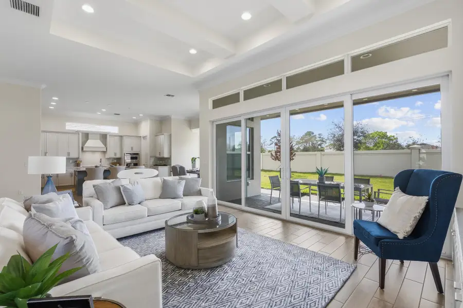 This exceptional Talbot Floorplan has 3 bedrooms, 3 bathrooms, den, 2+ car garage home represents an artful fusion of sophisticated design and everyday comfort. Spanning 2,532 square feet of thoughtfully crafted living space, this home showcases cathedral ceilings creating an open and welcoming space. The gourmet kitchen stands as the home's crown jewel, featuring premium KitchenAid appliances, cooktop with hood, and a huge walk-in pantry. Wood plank porcelain tile flooring throughout adds a touch of timeless elegance while Quartz countertops, crown moldings, and maple cabinets give the home a contemporary flair. The easy flow from the kitchen into the great room, with 16' of sliding glass doors the open to an expansive lanai complete with cabana bath make this home perfect for enjoying the Florida lifestyle. Whether hosting intimate gatherings or enjoying quiet evenings, this residence offers the perfect stage for life's most cherished moments, wrapped in an architectural package that celebrates both form and function with equal aplomb. Plenty of room for a future Pool.