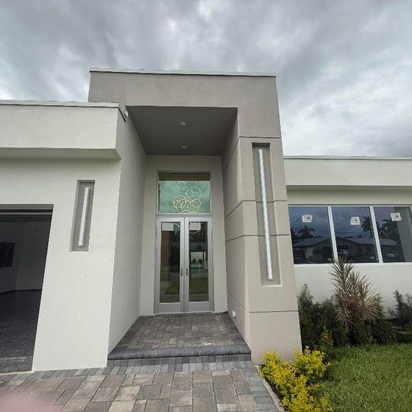 New-construction custom residence offers luxury living and gracious entertaining opportunities. five bedrooms, four and one half bathrooms with over 3289 living and over 4355 total square footage. A T-shaped kitchen island is a chef's dream, featuring a cooktop, wall oven, and ample storage. A decorative fireplace adds warmth to the living area. Step outside to a backyard with a pool and an open feel. The residence also features complete hurricane impact windows and doors, a wet bar, a laundry room with custom shelving, and an oversized single-car garage. Best of all, there's no HOA to limit your freedom. This property is the perfect blend of luxury and privacy, waiting for you to make it your own.
