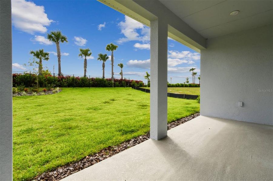 Your private Owner’s Retreat includes a spacious walk-in closet and a spa-inspired bath for comfort and relaxation. Two secondary bedrooms are thoughtfully separated to provide privacy and flexibility. Step outside through sliding glass doors to enjoy an extended lanai and generous backyard—the perfect setting for soaking up the Florida sunshine or letting pets play freely.