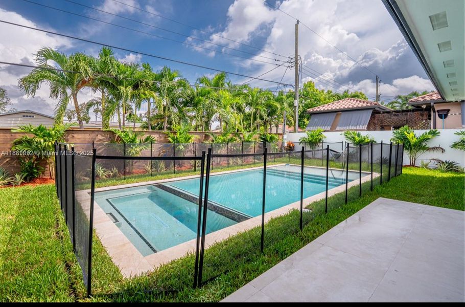 This new construction 4/3 pool home combines modern luxury with everyday comfort. Featuring 2,400sq ft, an open-concept floor plan, soaring ceilings & abundant natural light, the living areas flow seamlessly into a kitchen with quartz countertops, custom cabinetry & stainless steel appliances. The primary bedroom offers a spa-like bathroom & 2 walk-in closets. Outdoors, enjoy a newly built heated pool and tub & spacious patio perfect for entertaining. Built with quality and durability in mind, the home includes a metal roof and impact windows/doors. Every detail is new, from flooring and fixtures to HVAC and plumbing giving you peace of mind & low-maintenance living. Located in a desirable neighborhood close to schools, parks, shopping, & dining. This is the home you've been waiting for!