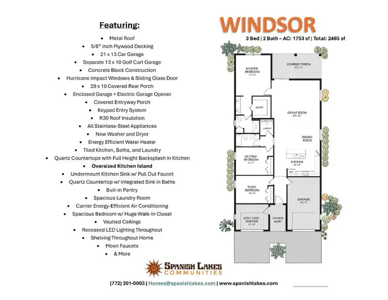 Our most Popular Model: The Windsor offers unmatched value with 3 full bedrooms, 2 baths, and a golf-cart garage with a Lake View - all within one of Spanish Lakes' most sought-after communities. Enjoy high vaulted ceilings, a chef's kitchen with a large island, and open concept living perfect for entertaining. Built for comfort and peace of mind with solid block construction and impact windows. Whether you're relaxing at home or enjoying the clubhouse, golf course, or pickleball courts, this home delivers the 55+ lifestyle you've been dreaming of.