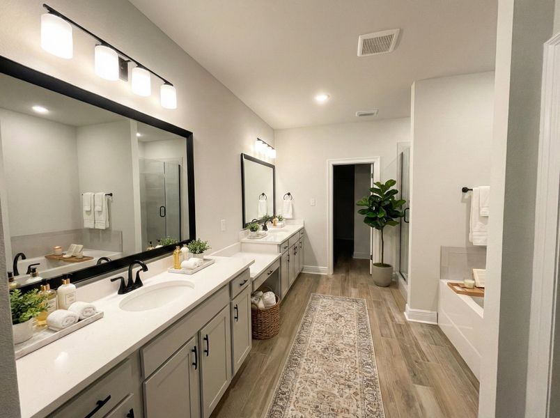 Features: double vanity, garden tub, separate custom tiled shower, and walk-in closet in master bath, double vanity in 2nd bath, walk-in closets,