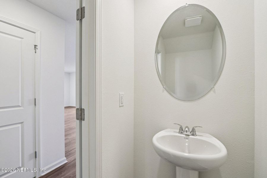 The first floor also includes a chic powder room for guests. Upstairs, enjoy generously sized bedrooms with ample closet space and a primary suite with a private bath and expansive walk-in closet. Additional highlights include a second-floor walk-in laundry room and a 2-car garage. Energy-efficient Low-E insulated dual-pane windows and a one-year limited home warranty ensure comfort and peace of mind.