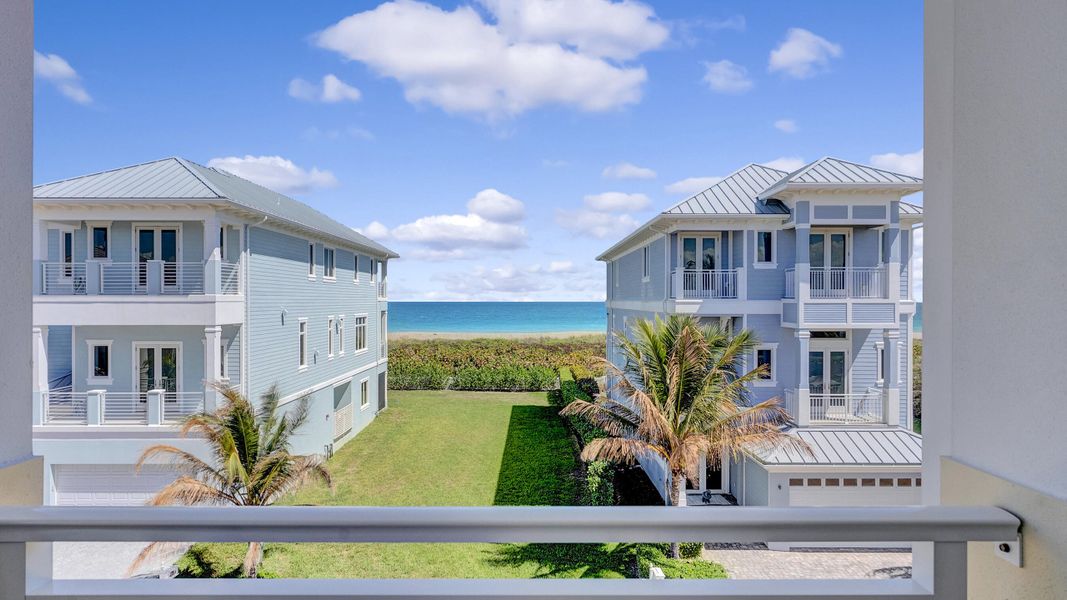Just steps from the sand, this newly completed 2026 coastal residence defines refined luxury with ocean breezes and timeless elegance. Offering over 3,500 sq ft across three levels, this 4BR/3.5BA home features en-suite baths in every bedroom, ideal for family living or hosting guests. Enjoy two ocean-facing balconies for sunrise views and an oversized Intracoastal balcony perfect for sunset entertaining. Highlights include a private elevator, hurricane-impact glass, abundant natural light, walk-in closets, coffee station, and wine/bar area. Located in a gated community with 3 private beach accesses and a resort-style pool.