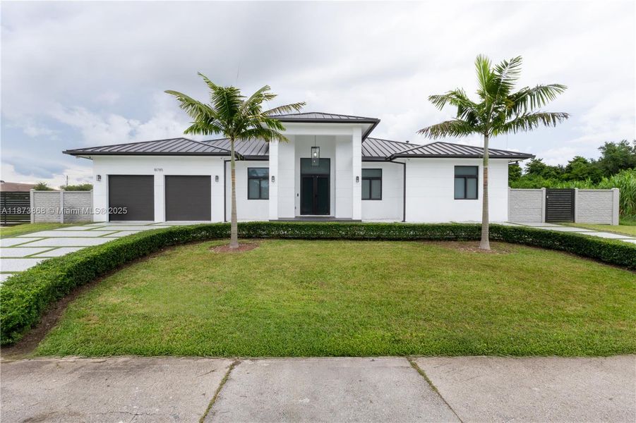 Experience luxury living in this stunning 5-Bedrooms, 3-Full Bath & 1 half bath. Newly built in 2023 with 3250 SQ FT under 2 AC units. Metal roof, 10 Foot ceilings with a gorgeous front door entrance. This upgraded property features custom walk-in closets, impact windows/doors, alarm/security system, perfect lighting indoor/outdoor, and 2-car garage. Step outside to your private oasis, complete with a heated pool, outdoor kitchen and bar ideal for year-round enjoyment. Plus, a convenient poolside full bathroom makes this backyard the ultimate retreat. This lot has additional space for boat, RV, and more with a 17,633 SQ FT Lot! This home will undoubtedly check off every box! No HOA, no CDD. Move-in ready! Call us today and schedule your private showing!