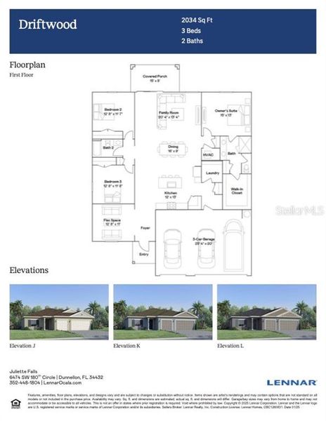 This new single-story home optimizes ease of living with elevated comfort. At the center of the home is a spacious open-concept living area with a large covered porch ideal for indoor-outdoor relaxation and entertainment. Framing the space are two secondary bedrooms, a tranquil owner’s suite and a flex space for versatile needs. A desirable three-car garage completes the home.