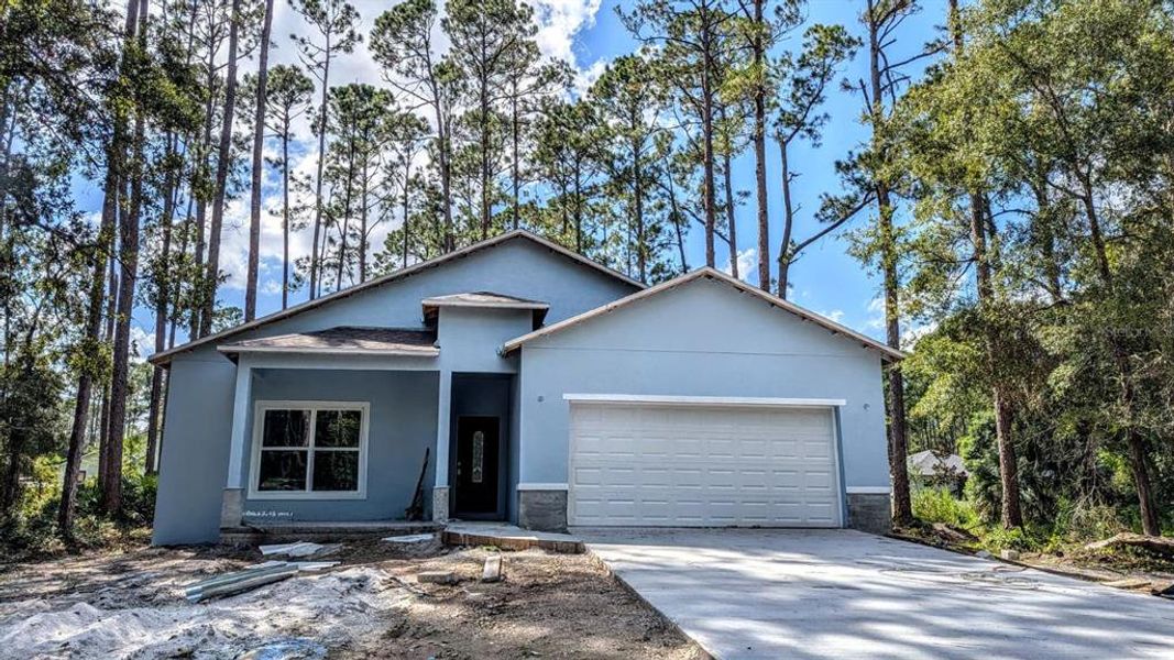 Corner Lot. Welcome to this bright and airy New Construction 4-bedroom, 3-bath home perfectly positioned on a coveted corner lot in Deland. Spanning 1,947 sf of air-conditioned living space, the property sits on a durable stem-wall foundation with its finished floor elevated two feet above base flood level—eliminating flood-insurance worries. This no-HOA residence is designed for comfort, efficiency, and bullet-proof strength, featuring CMU (concrete masonry unit) exterior walls and a truss-tie roof system engineered to withstand up to 150 mph winds. With private well water, a septic system, and an HVAC fully compliant with Florida’s energy code, every detail is built to perform. Key Features 1,947 sf air-conditioned space 4 spacious bedrooms, 3 full bathrooms 2-car garage with ample driveway parking; Stem-wall foundation; floor 2 ft above base flood level CMU exterior walls for superior hurricane resistance; Roof truss ties rated for 150 mph wind loads; Septic system and private water well (no city utilities); Florida Energy Code–compliant HVAC 40 gal water heater; Designer Finishes; Durable, easy-care tile flooring throughout; Low E argon-filled windows for enhanced insulation; Gourmet kitchen with oversized island Granite countertops and premium cabinetry; Top-tier stainless-steel appliances; Embrace peace of mind with engineered hurricane resilience and energy-smart systems, all wrapped up in a flexible, open layout that flows seamlessly from room to room. Schedule your private tour today! House will be ready by Oct 10th