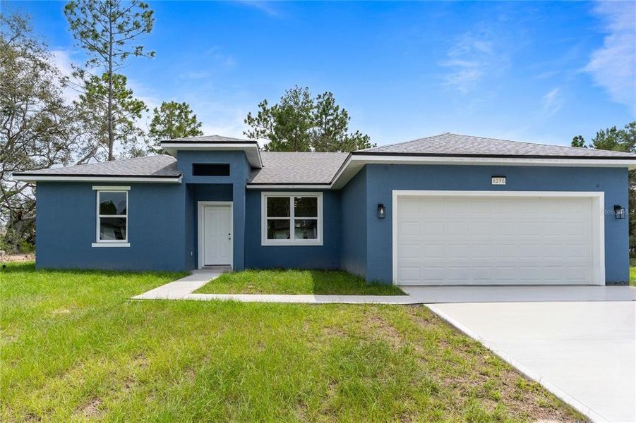 Step into this stunning new construction 4-bedroom, 2-bathroom residence located in the vibrant Marion Oaks community of Ocala, FL. Designed with modern living in mind, the home showcases a bright and open Great Room that flows seamlessly into the kitchen and dining areas, perfect for everyday living and entertaining. Beautiful luxury vinyl flooring runs throughout the main spaces, complemented by upgraded lighting and stylish fixtures that add an elegant touch. The kitchen is a true highlight, boasting port white quartz countertops, stainless steel appliances, abundant cabinetry, and a spacious pantry to keep everything organized. A thoughtfully planned split floorplan ensures the Primary Suite is tucked away for added privacy.