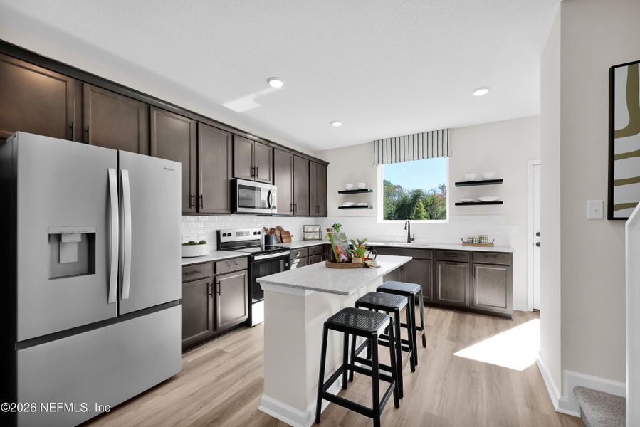 The Maple plan of our twin villas combines modern finishes with low maintenance living in an unbeatable location. The bright, open concept kitchen features elegant quartz countertops, sleek under cabinet lighting, and a spacious wrap around kitchen perfect for everyday living or entertaining. The private primary suite includes a spa inspired bathroom complete with a tile surround shower, offering both style and durability. Large windows throughout the home provide abundant natural light, enhanced by the villa's desirable end unit positioning that adds extra privacy and additional yard space. Located just minutes from shopping, dining, and a nearby hospital, this home offers both comfort and convenience. Whether you're looking for a lock and leave lifestyle or a beautifully appointed full time residence, this twin villa checks all the boxes. Photos are of model home; colors and elevation may vary.