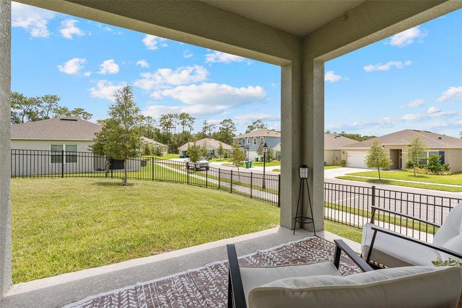 Natural light pours through the living and dining areas, highlighting sleek tile floors and peaceful backyard views. Relax in your private, fenced yard or take advantage of the resort-style community amenities — sparkling pool, fitness center, tennis courts, clubhouse, cabanas, and playground — all designed for endless fun and relaxation. With solar panels keeping energy costs low and furnishings negotiable, this home truly has it all — style, comfort, and smart living in one beautiful package.