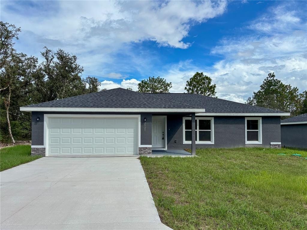 Seller may Finance with substantial down payment, rate & term to be negotiated. Luxurious Split-Floor Plan Home with Private Backyard. Secluded Country Retreat. Close to WEC, and Ocala. just 30 minutes west of Ocala, 15 minutes from Downtown Dunnellon, and 30 minutes from the Gulf Coast town of Crystal River. Home Owners insurance recent quote was $652 for the entire Year! (See attached quote) Welcome to this hidden gem for those seeking quiet country living and unlimited potential. This property offers the serenity of natural surroundings. Discover the perfect blend of modern elegance and functional design in this newly constructed home, thoughtfully crafted with a split floor plan for privacy and convenience. The spacious living room flows seamlessly into a dining area and an inviting eat-in kitchen, where natural light pours through a sliding glass door, highlighting the sleek granite countertops, premium stainless steel appliances, and ample cabinetry—ideal for both everyday living and entertaining. The luxurious master suite, tucked away for tranquility, features expansive walk-in closets. Direct access to a well-appointed indoor laundry room. Its ensuite bathroom elevates relaxation with dual sinks and a spacious walk-in shower. On the opposite side of the home, two additional bedrooms provide versatility for family or guests, sharing a stylish full bath. Step outside to your private oasis—a sprawling backyard offering endless possibilities for recreation, gardening, or serene relaxation. This property masterfully balances comfort, sophistication, and the freedom of expansive outdoor living. Builder provides 1 year Workmanship, 2 year Systems Warranty and 10 year Structural Warranty. Love the Rainbow Lakes Estates offers a Community Center and a Recreational Park which include playgrounds, tennis courts, racquetball courts, basketball courts, baseball field, walking trails, a boat ramp to Tiger Lake, and picnic pavilions. Rainbow River and Rainbow Springs are part of Marion County's Top outdoor attractions and are only a short 10 minute drive from Rainbow Lakes Estates. Enjoy the crystal clear water of the Rainbow River for kayaking, tubing and outdoor fun. Play a round of golf just 10 minutes away at Nationally recognized Juliette Falls Championship Golf Course or the 9 hole course just 9 minutes away.