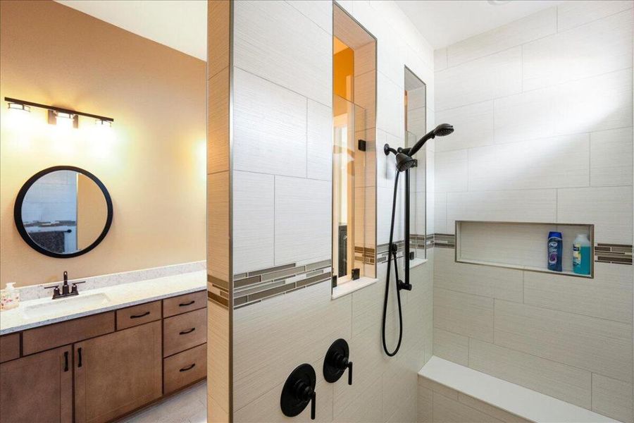 - Ceiling-HighCeiling-VaultedWalk-In ClosetPantryBlindsSeparate Shower