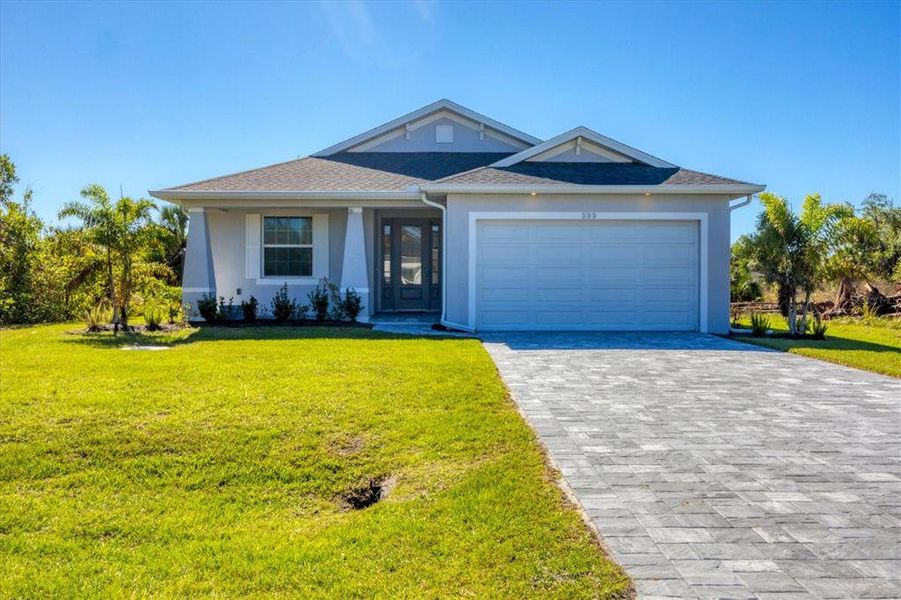 Additional highlights include impact windows and doors, upgraded interior and exterior paint, stylish fixtures, a pavered driveway, walkways, and lanai, underground utilities, and lush, manicured landscaping.