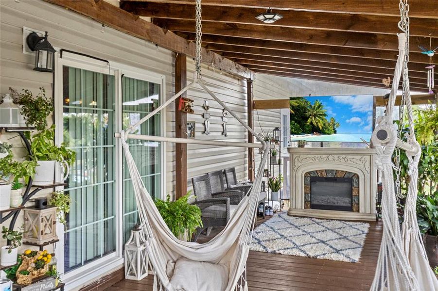Beautiful 3-bedroom, 2-bathroom home on 1.25 acres, fully fenced with a gated entry! This 2024-built property offers an open floor plan with laminate flooring throughout and a cozy fireplace in the living room. Enjoy indoor-outdoor living with sliding doors leading to a large covered back deck/porch, perfect for relaxing or entertaining. The kitchen features wood cabinets, stainless steel appliances, a farmhouse sink, and a large island ideal for meal prep or gathering. The primary suite includes dual sinks, a large soaking tub, and a separate shower. Outside, enjoy an above-ground pool and plenty of space for your animals or hobbies — the property is zoned residential/agricultural, allowing for a small farm or workshop. Experience peaceful country living with room to grow!