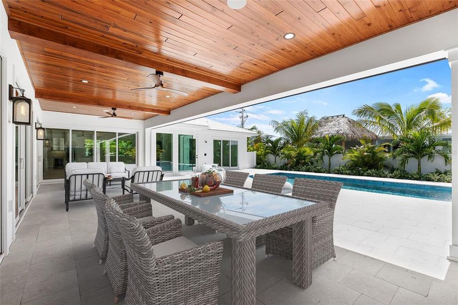 Modern Coastal Luxury - NEW HOME - Just Completed! Discover one of Boca Grande’s newest and most exclusive homes on the prestigious North Shore of Gasparilla Island. This brand-new 5-bedroom, 5-bathroom estate (each bedroom featuring en-suite bathrooms) offers over 4,000+ sq. ft. designed for effortless coastal entertaining on one level. Set at the end of a private living cul-de-sac and positioned on one of the highest elevated lots on the island, the property is surrounded by masonry privacy walls and features professionally designed lush tropical landscaping. Once inside, you’ll find soaring ceilings, custom millwork, 7.5” white oak flooring, and impact-rated sliders that blend indoor and outdoor living. A unique zero-post sliding glass door system leads to an expansive covered lanai (600+ sq. ft.) featuring a retractable Phantom Screen, custom outdoor kitchen with Coyote appliances, while overlooking the elegantly designed pool and spa. The home is an entertainer's dream featuring a chef’s inspired kitchen complete with designer cabinetry, Thermador appliances, extra-large workstation sink, dual dishwashers, quartz countertops, and a 12' center island perfect for hosting. Additional highlights include a wet bar and prep area coupled with a wine chiller tower, beverage center, spacious walk-in pantry, and discreet mudroom/laundry area. The primary suite is thoughtfully designed offering a majestic view of the pool and backyard with separate walk-in closets. The primary bathroom is a serene retreat offering heated floors, an oversized shower and soaking tub, along with custom Robern medicine cabinets and designer lighting. The additional en-suite bathrooms offer their own privacy and Bedroom 2 can also serve as a den or office if desired. Guest suite bathrooms provide private comfort with curbless walk-in showers and custom designer finishes throughout. Designed by nationally recognized T.A. Krebs Architects, and crafted by preferred island builder L.J. Silva Construction, this 2025 masterpiece combines masonry block construction with energy-efficient spray foam insulation, premium concrete tile roofing, "cool touch" Shellock pool and lanai pavers, and a 24 kW Generac generator. With an attached 3-car garage, the home has ample storage for your Moke or golf cart and other outdoor island toys. Smart home technology includes an app-controlled pool/spa & fireplace lighting, irrigation, sound pre-wiring throughout and a 75" Samsung Frame Pro TV in the family room. Deeded beach access is just steps away and ownership boat dockage with lift capability (up to 65') is just across the road, for easy and quick access if desired. This estate offers both tranquility and accessibility to the island’s best amenities. Along with Coral Creek Jet Center/Airport and a Tom Fazio Signature Golf Course just across the Bridge. A few photographs are virtually staged. Experience the pinnacle of Boca Grande living - modern coastal luxury at its finest.
