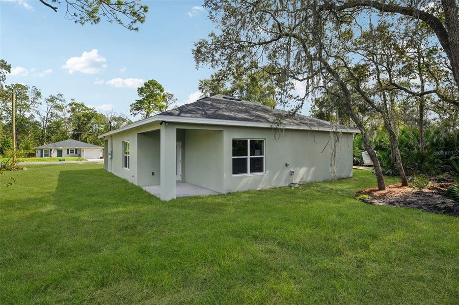 NEW CONSTRUCTION HOME! NO HOA! NOT IN FLOOD ZONE! ON NEWLY PAVED ROAD! Don't miss this great opportunity to own a brand-new 3-bedroom, 2-bathroom, 2-car garage home located just minutes from beautiful downtown DeLand. This home features an open-concept kitchen with a large island, quartz countertops, and stainless steel appliances including a range, refrigerator, dishwasher, and above-range microwave. The kitchen is highlighted by stunning 42'' upper cabinets, while the main living areas offer stylish vinyl plank flooring and both bathrooms are finished with tile. The spacious master suite includes an oversized walk-in closet and a luxurious bathroom with a soaking tub, a beautifully tiled walk-in shower, and double vanities. Throughout the home, you'll find thoughtful upgrades: ceiling fans in all bedrooms and the living room, 5 1/4'' baseboards, insulated double-pane vinyl-frame windows, inside laundry room and architectural shingles. Also includes covered front and back porches!