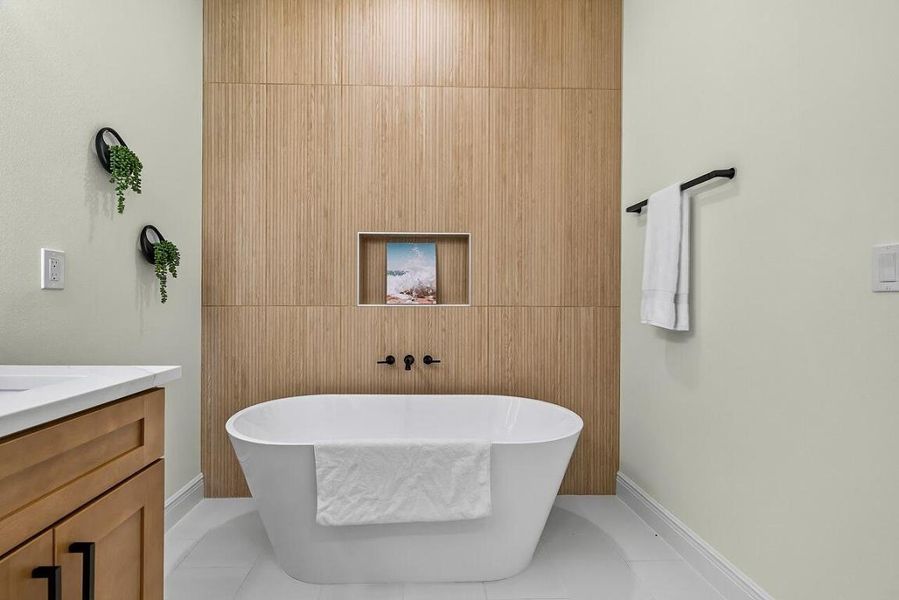 Retreat to your spa-inspired primary suite featuring dual quartz vanities, a large walk-in tile shower, and a luxurious 71-gallon deep soaking tub highlighted by HGTV inspired details. Every detail speaks of comfortsmart remote ceiling fans, recessed lighting, black modern hardware, and Sherwin Williams Greek Villa walls create a timeless and airy feel.