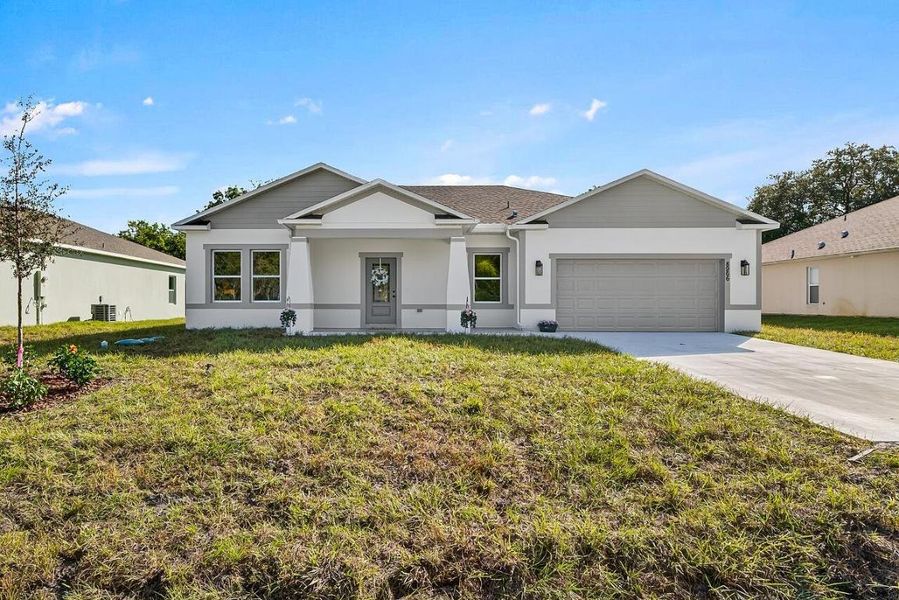 Custom HDZ Homes Redwood Plan - Where Modern Luxury Meets Everyday Comfort! Experience the perfect blend of style, quality, and livability in this stunning CBS 3-bedroom, 2-bath, 2-Car (21'4 x 24'8) Garage that is wide & spacious! From the moment you enter, you'll feel the thoughtful design and craftsmanship that make this home truly special. Soaring 9-foot ceilings, impact-rated windows, doors, and garage doors provide beauty, peace of mind, and energy efficiency. Elegant Lifeproof LVP flooring flows seamlessly throughout, accented by ceramic and porcelain finishes that add sophistication to every space. The chef's kitchen is the heart of the home, showcasing gleaming quartz countertops, a Frigidaire stainless appliance suite, soft-close cabinetry, and a spacious islandperfect for cooking, gathering, and entertaining. The open living area invites you to unwind by the electric fireplace, where color-changing LED lighting sets the mood for cozy evenings or stylish ambiance.