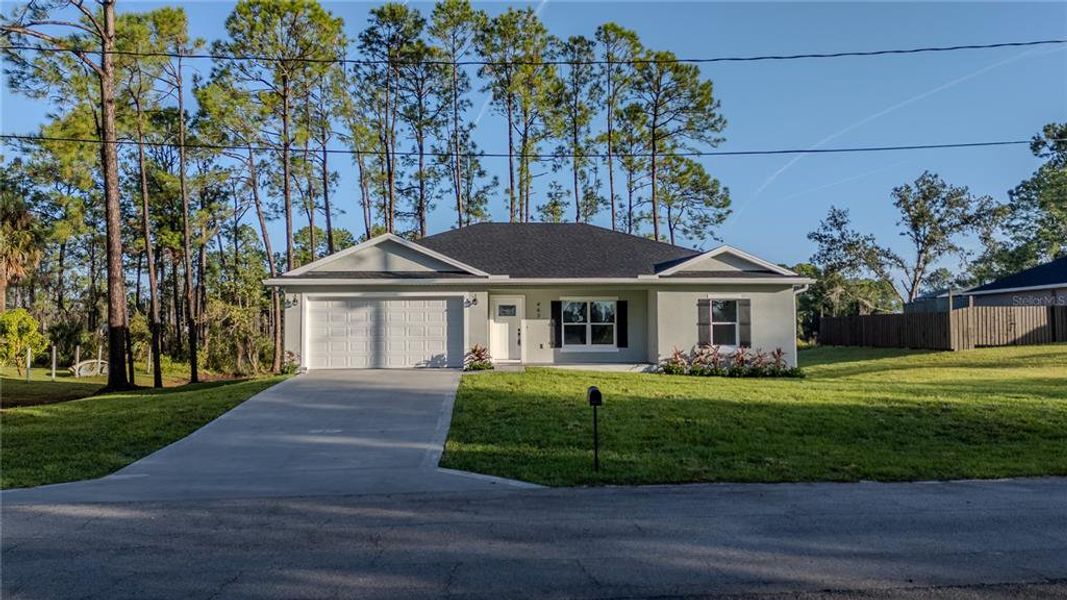 No hoa! New construction and ready for immediate occupancy. Luxurious 3 bedroom 2 bath, front and elevated rear porch and a 2 car garage. Oversized 100x150 lot with views of 2 lakes. Located on a culdesak for less traffic. Enjoy your morning coffee on the elevated rear porch and enjoy the peaceful and serene wooded views with no backyard neighbors. When you step inside you will find an open, bright and airy home with serene views from every room. For easy clean the whole house has luxurious vinyl plank flooring. The bathroom floors and shower and tub surrounds have ceramic tile. The kitchen is a chef's delight with stainless steel appliances to include refrigerator, range, dishwasher and microwave with White cabinets with soft close doors and drawers and granite countertops. There is an extensive number of recessed lighting throughout the home with designer ceiling fans in all the bedrooms and living area. A majestic master en suite with separate his and her sinks and a huge walk in closet. There is room for a pool. Just minutes to grocery stores, hospitals and restaurants.