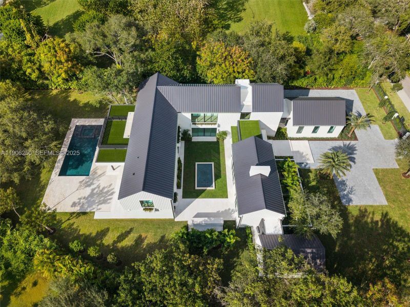 Crafted by Balli Group, this newly completed tropical modern estate epitomizes refined living in highly coveted Northeast Pinecrest. Thoughtfully designed by renowned architect Giorgio Balli, with interiors by Adi Balli, the 12,400 SF Residence rests on a quiet, gated 1+ acre site. It features 7 en-suite bedrooms, 7 full and 2 half baths, a 3-car garage with lift capacity for up to 6 vehicles, and dedicated golf cart or bicycle storage. Expansive glass walls open to a resort-style pool, summer kitchen, and lush gardens, creating seamless indoor–outdoor flow. Natural materials, soaring ceilings, and curated finishes define the interiors, complemented by a Savant smart-home system, elevator, wellness suite/gym, and media room.